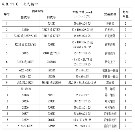 | 5 | 32208 或 30207 | 7508E 或(huò) 7207E | 25×62×18.25 | 前輪毂(gū)内 | 2 |