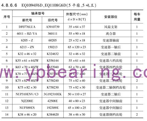 | 12 | NJ2208E | 42508E | 40×80×23 | 變(biàn)速器中間軸(zhóu)前 | 1 |