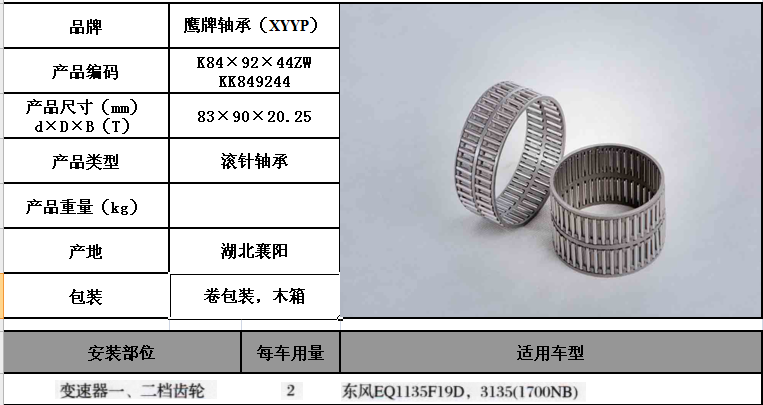 滾針(zhen)軸承-K84×92×44ZW-KK849244-83×90×20.25-鷹(ying)牌軸承(cheng)
