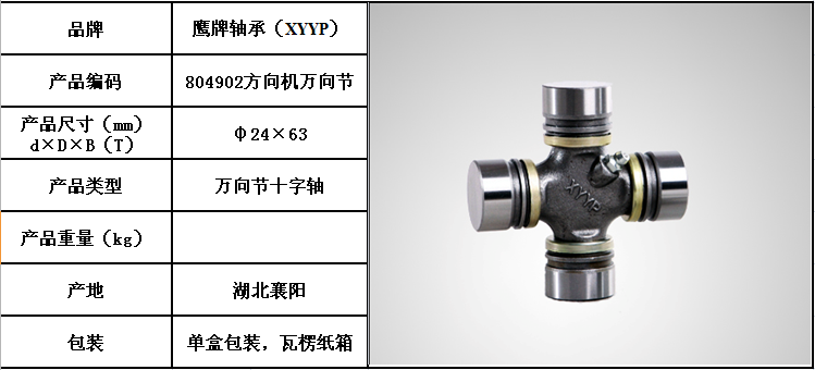 萬向節(jie)十字軸(zhóu)-804902方向機(jī)萬向節(jiē)-φ24×63-鷹牌軸(zhou)承
