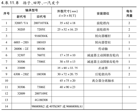 揚(yang)子、田野(yě)、一汽皮(pí)卡 車橋(qiao)軸承型(xíng)号