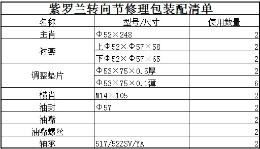 * 表示必(bi)填采購(gòu):轉向節(jie)主肖修(xiu)理包-紫(zǐ)羅蘭